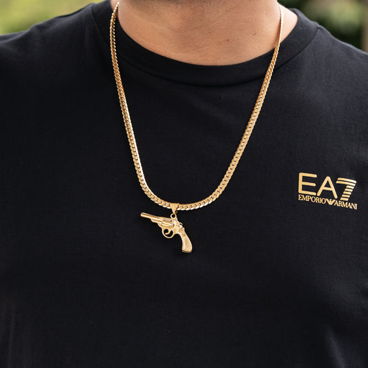 Combo Hombre Cadena Serpiente + Dije Revolver