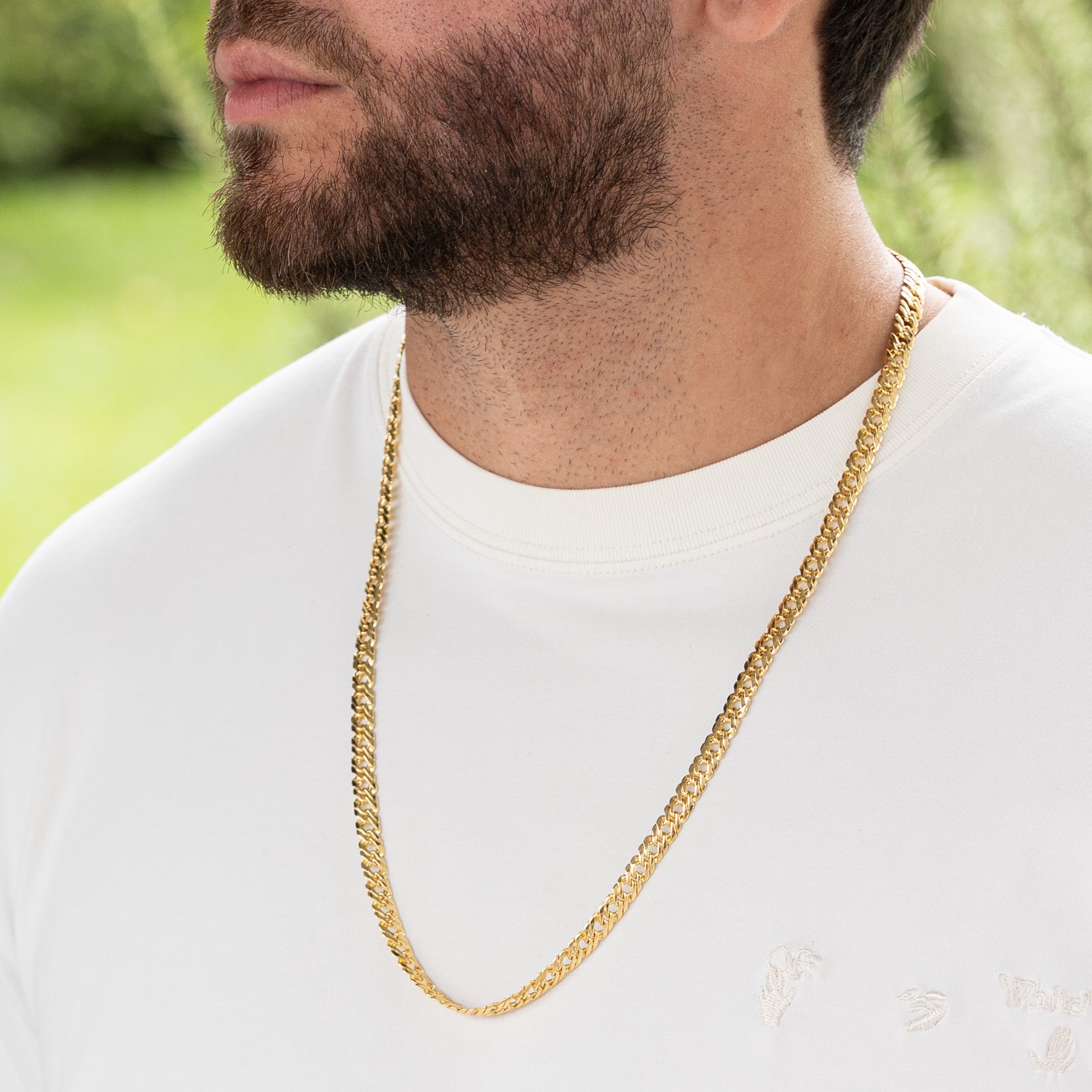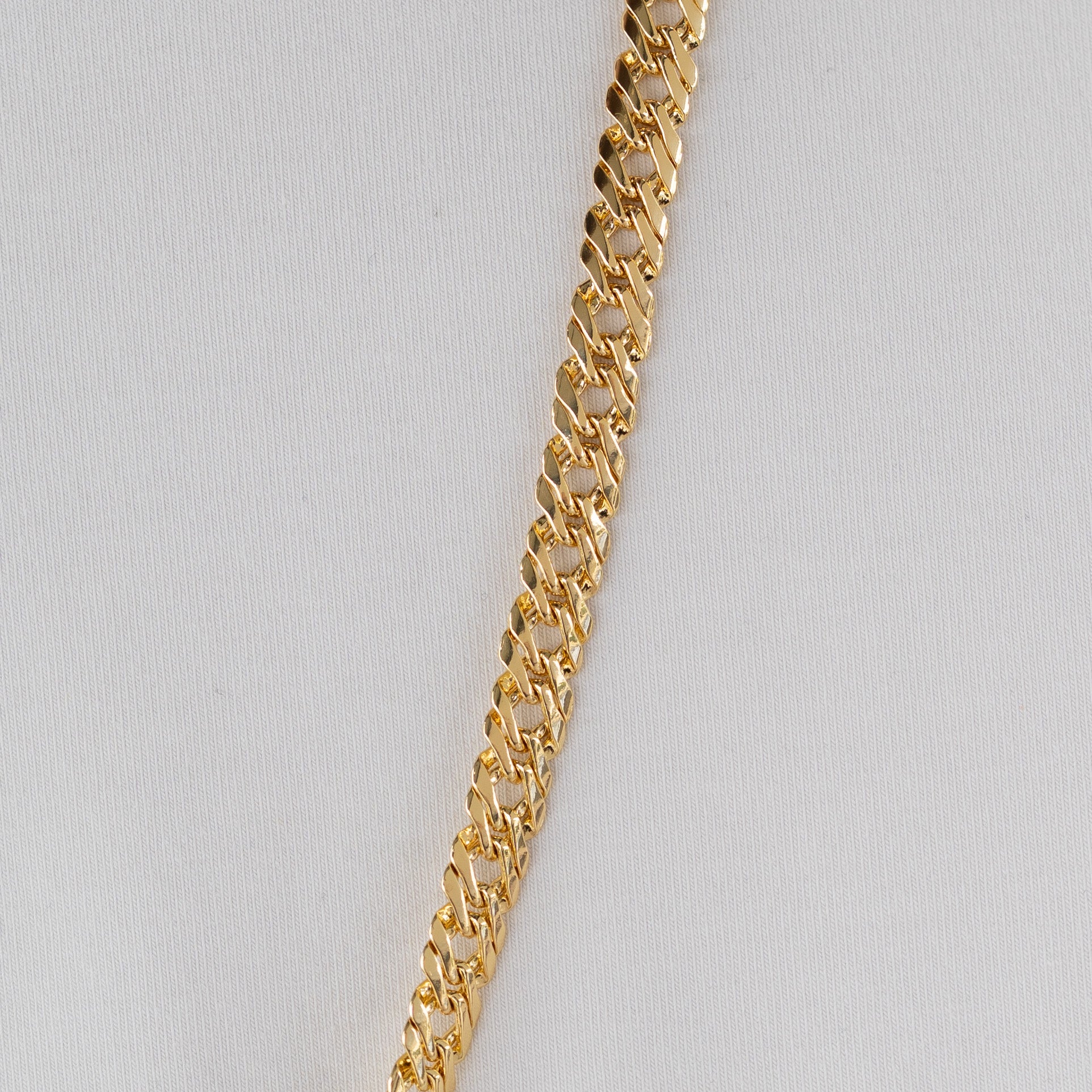 Cadena de Oro Laminado Italiano 18K con diseño clásico y acabado brillante. Perfecta para usar sola o con otros accesorios, combina elegancia y durabilidad. Una pieza resistente que mantiene su belleza a lo largo del tiempo, ideal para realzar cualquier look. Todas nuestras joyas son contramarcadas en sus broches (por un lado el doble lingote que nos identifica y por le otro el 18K).