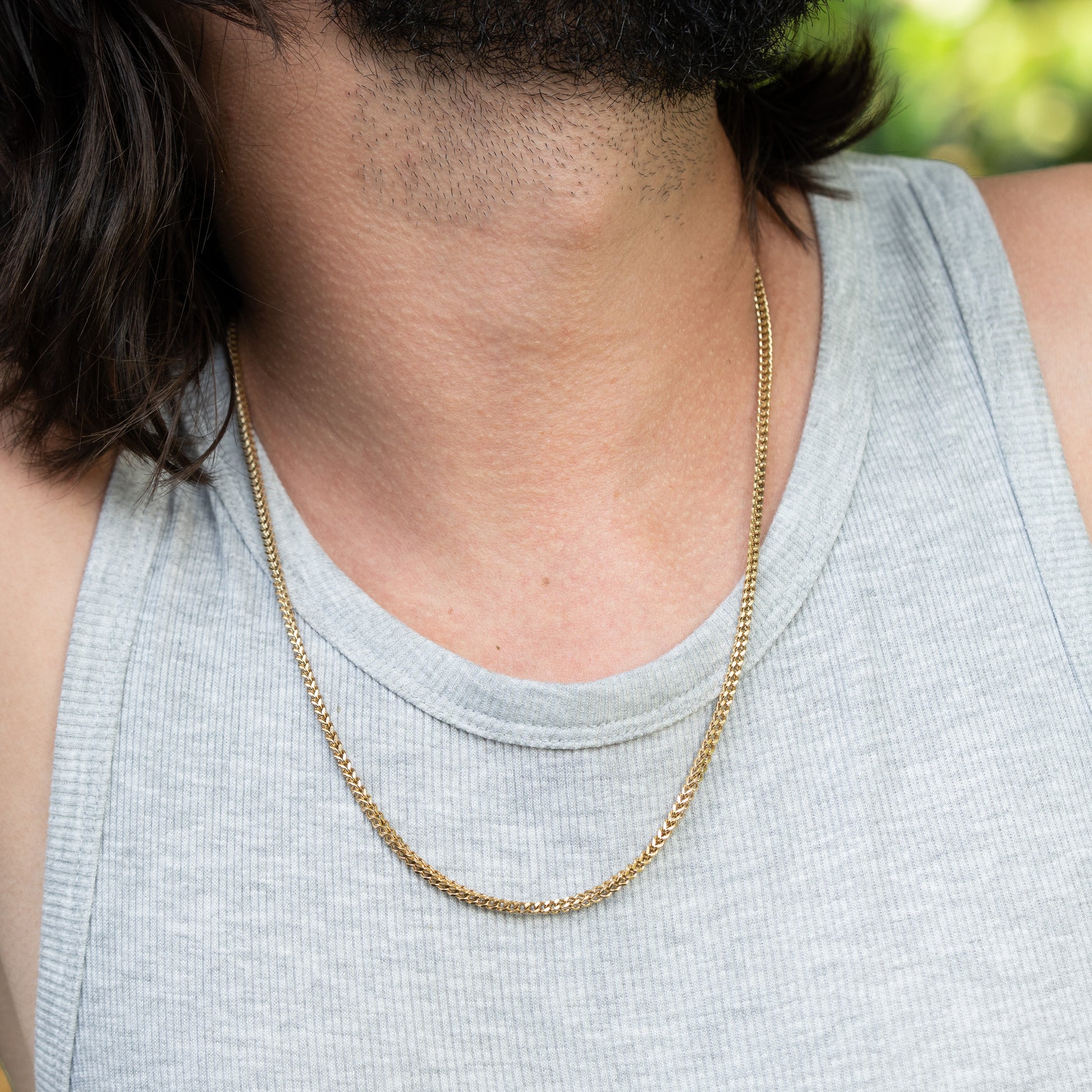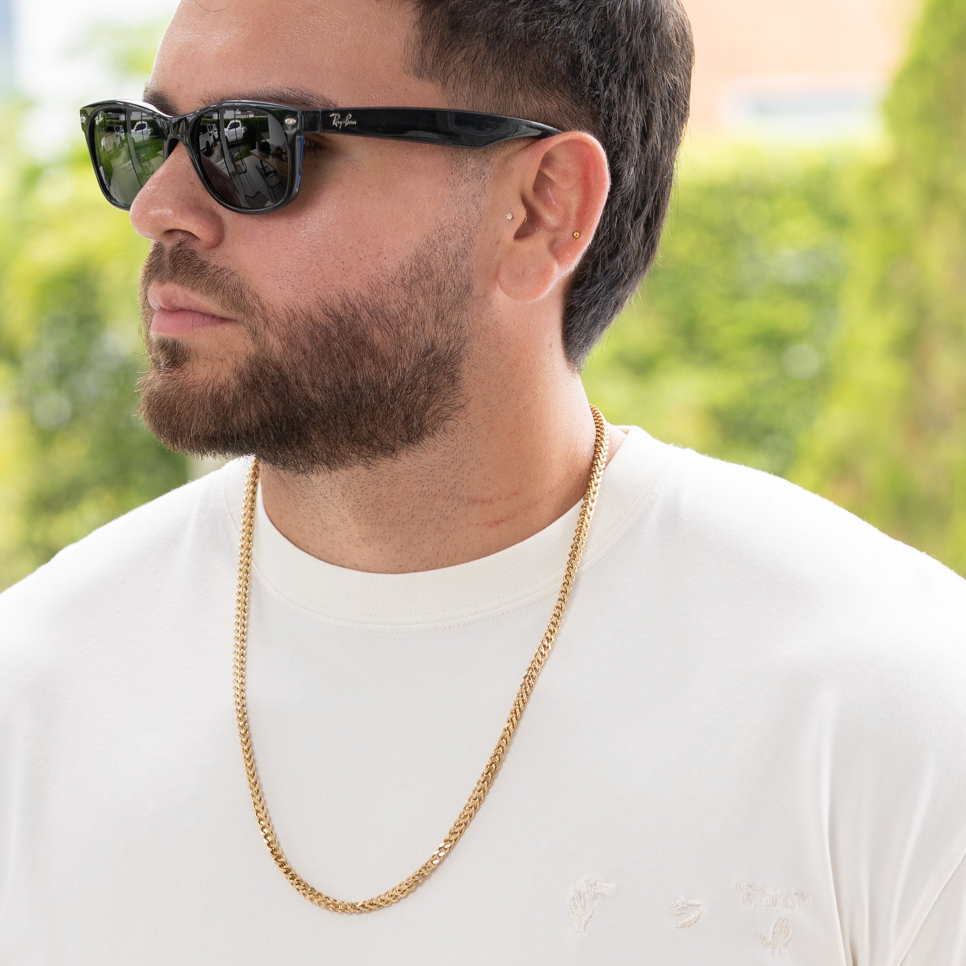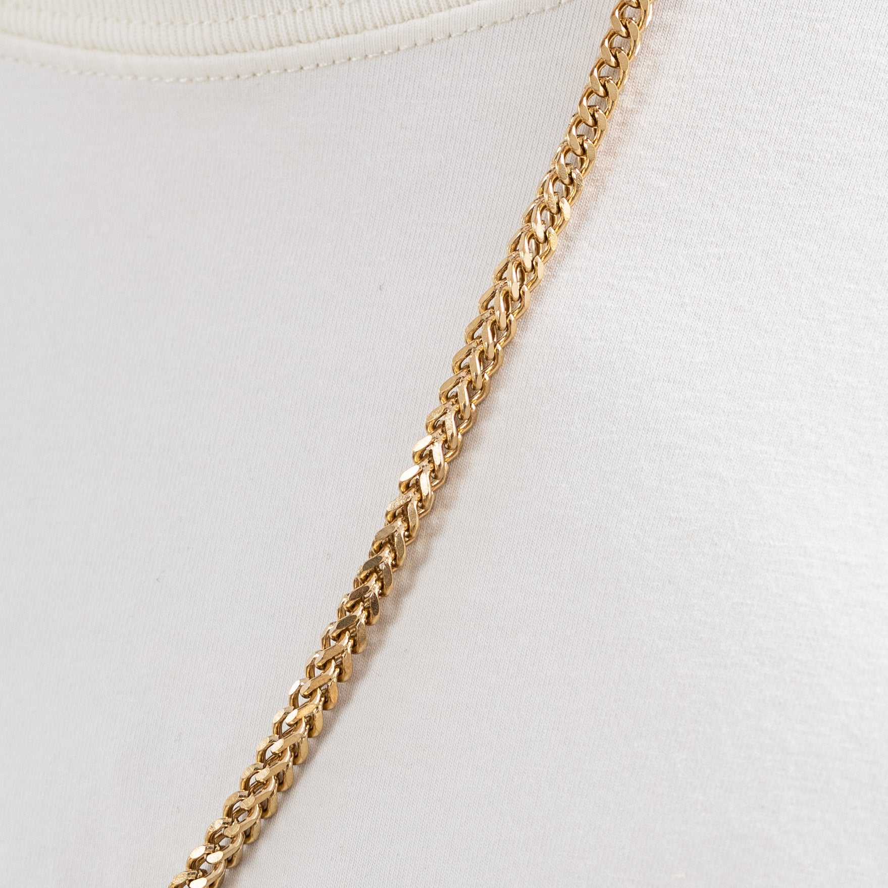 Cadena Franco de oro laminado con diseño clásico y acabado brillante. Perfecta para usar sola o con otros accesorios, combina elegancia y durabilidad. Una pieza resistente que mantiene su belleza a lo largo del tiempo, ideal para realzar cualquier look.