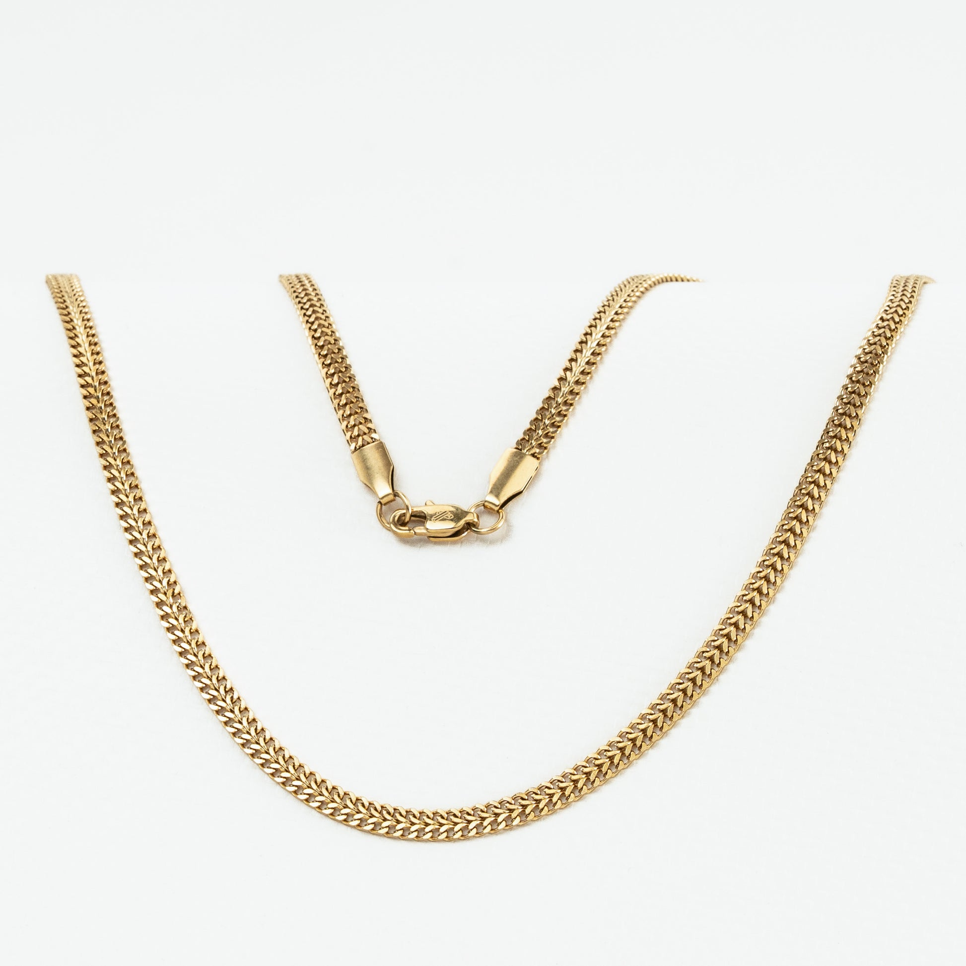 Cadena de Oro Laminado Italiano 18K con diseño clásico y acabado brillante. Perfecta para usar sola o con otros accesorios, combina elegancia y durabilidad. Una pieza resistente que mantiene su belleza a lo largo del tiempo, ideal para realzar cualquier look. Todas nuestras joyas son contramarcadas en sus broches (por un lado el doble lingote que nos identifica y por le otro el 18K).
