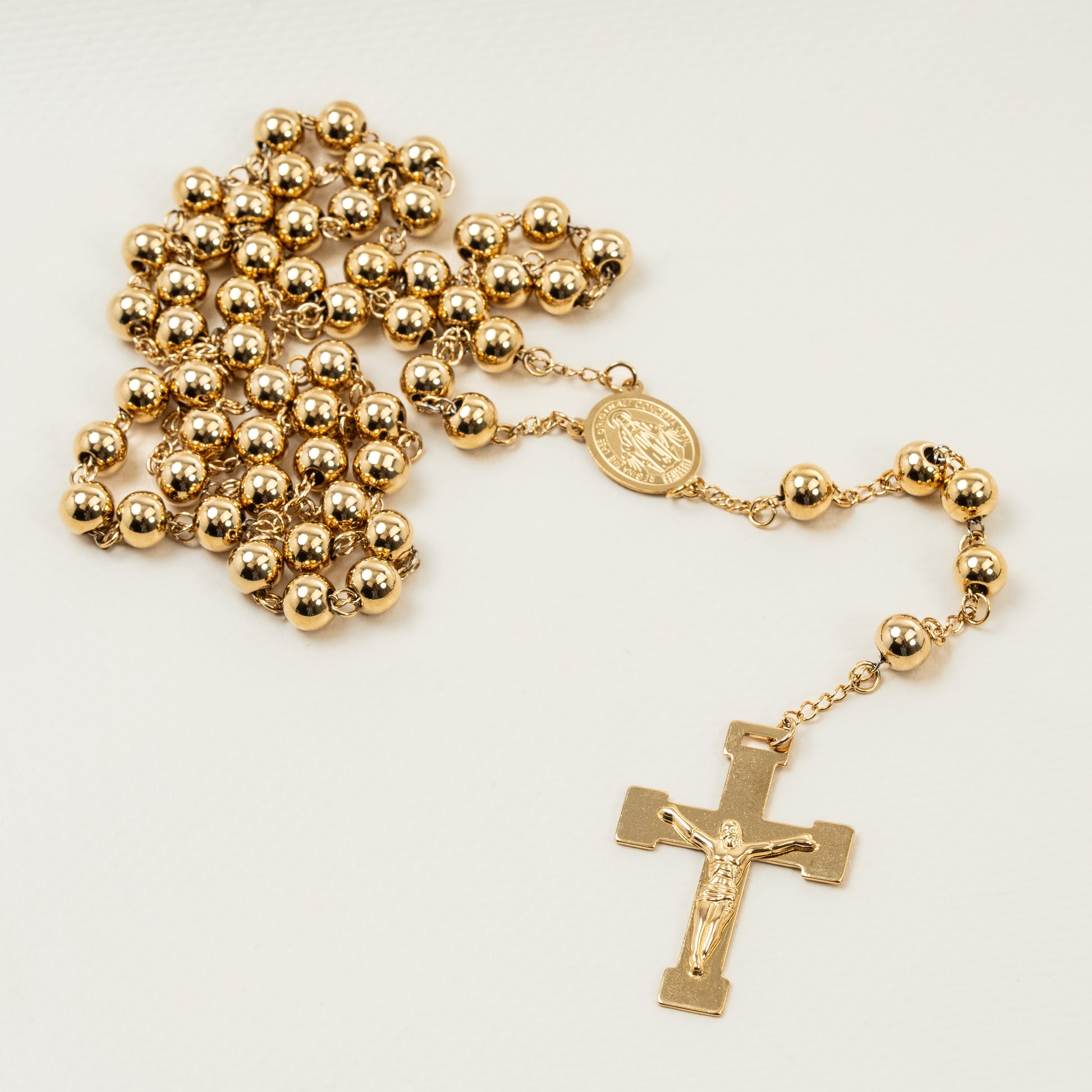Camandula de Oro Laminado Italiano 18K con diseño clásico y acabado brillante. Perfecta para usar sola o con otros accesorios, combina elegancia y durabilidad. Una pieza resistente que mantiene su belleza a lo largo del tiempo, ideal para realzar cualquier look. Todas nuestras joyas son contramarcadas en sus broches (por un lado el doble lingote que nos identifica y por le otro el 18K).