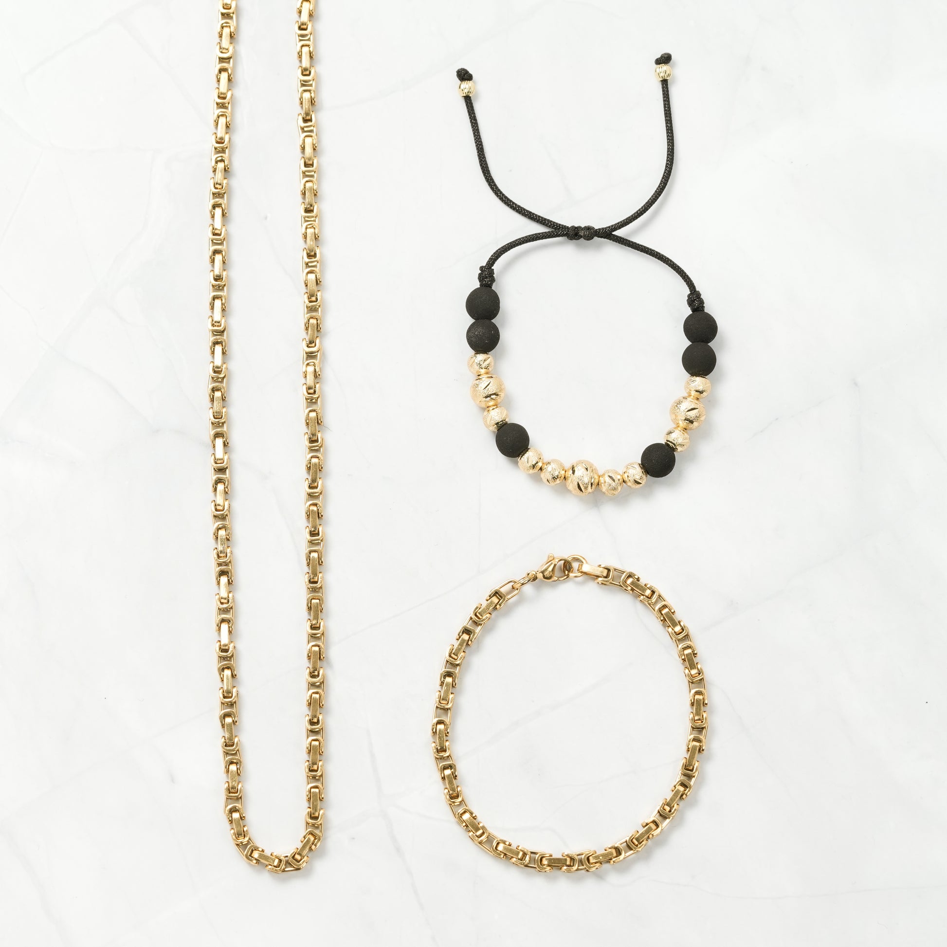 - Combo Black Friday Navideño Rustica para caballero (4 mm de grosor) + Manilla ajustable 11 Balines en Oro Laminado Italiano 18K. Combina elegancia y durabilidad. Una pieza resistente que mantiene su belleza a lo largo del tiempo, ideal para realzar cualquier look. Todas nuestras joyas son contramarcadas en sus broches (por un lado el doble lingote que nos identifica y por le otro el 18K).