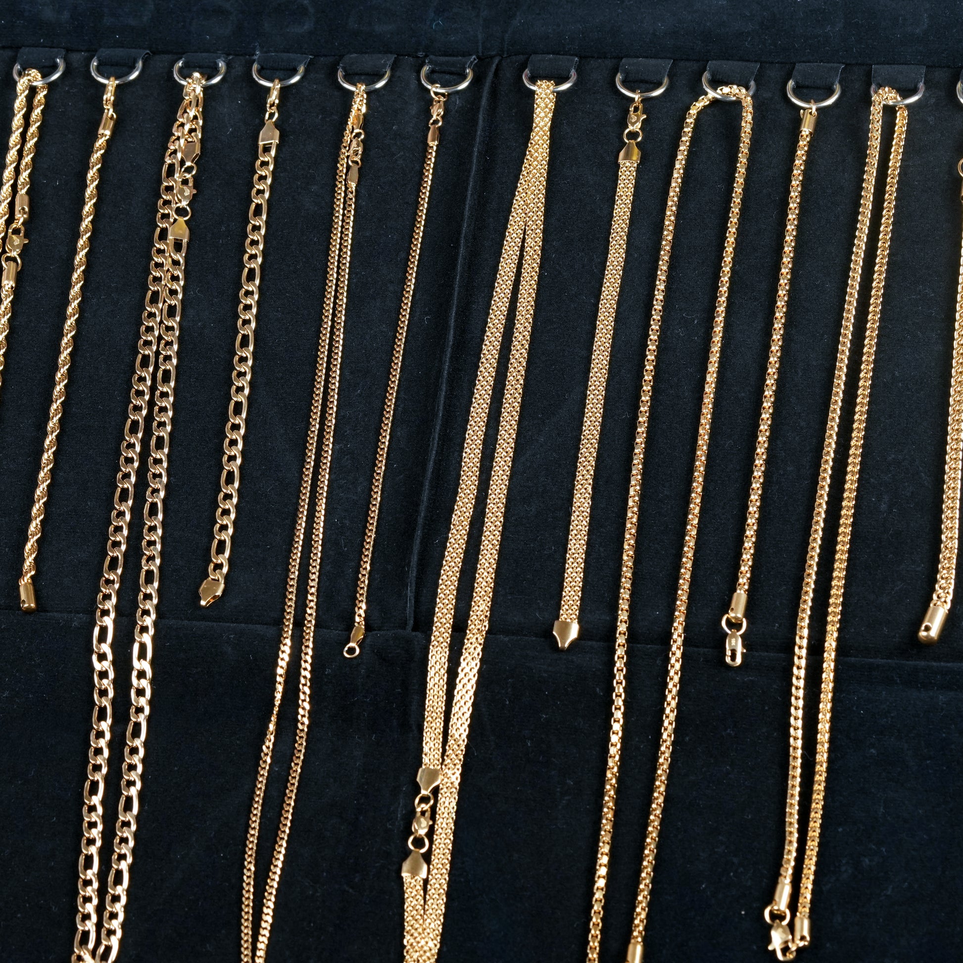 El Combo Paño Emprendedor reúne las 20 piezas de mayor demanda en nuestro catálogo, diseñado estratégicamente para multiplicar tu rentabilidad. Contiene 6 cadenas y 6 pulseras para caballero, junto con 4 cadenas y 4 pulseras para dama, todas en oro laminado 18k con respaldo de garantía vitalicia. Una selección que combina versatilidad y confiabilidad para potenciar tu negocio de joyería.