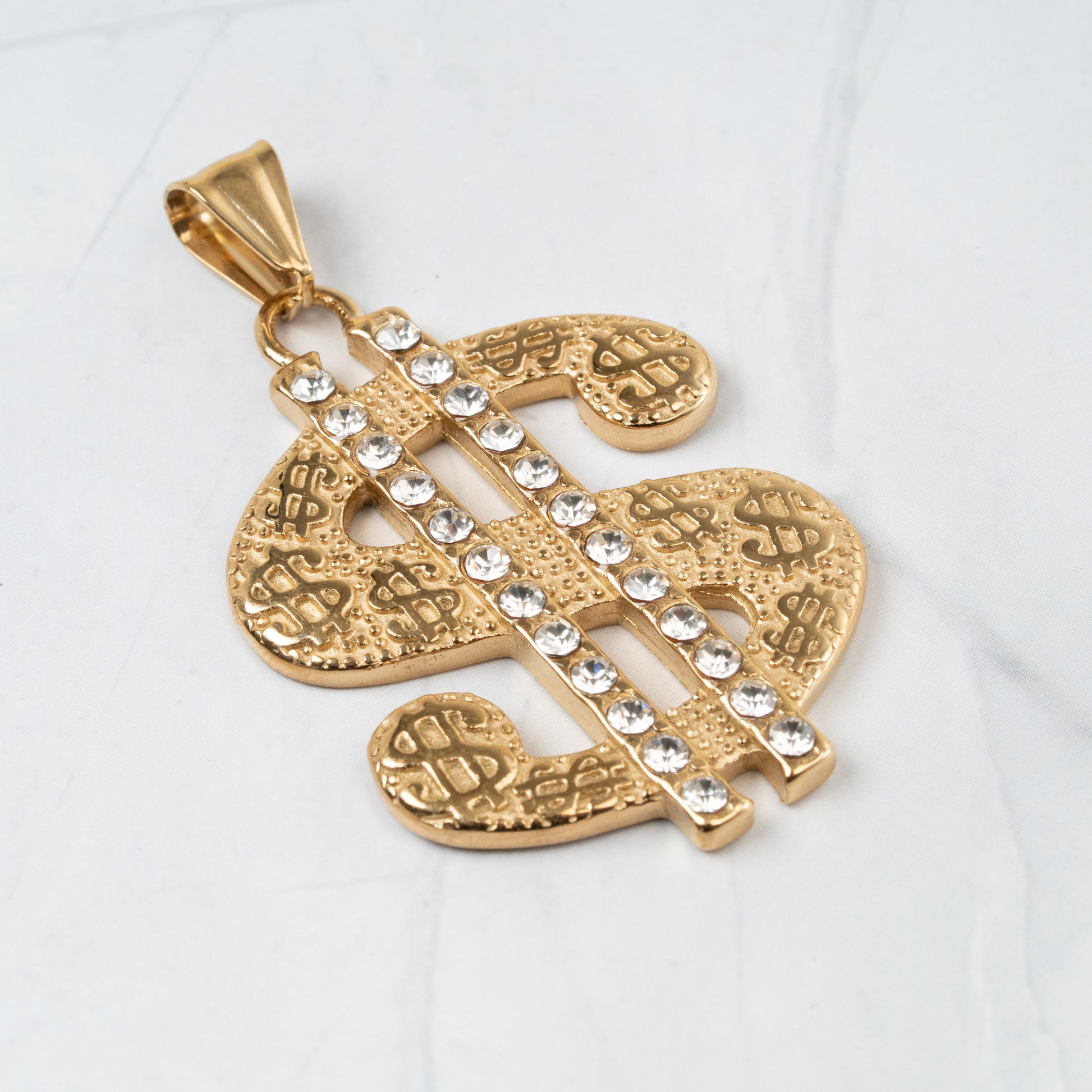 Dije Dolar en Oro Laminado Italiano 18K. Combina elegancia y durabilidad. Una pieza resistente que mantiene su belleza a lo largo del tiempo, ideal para realzar cualquier look. Ideal para cadenas de hasta 6mm.