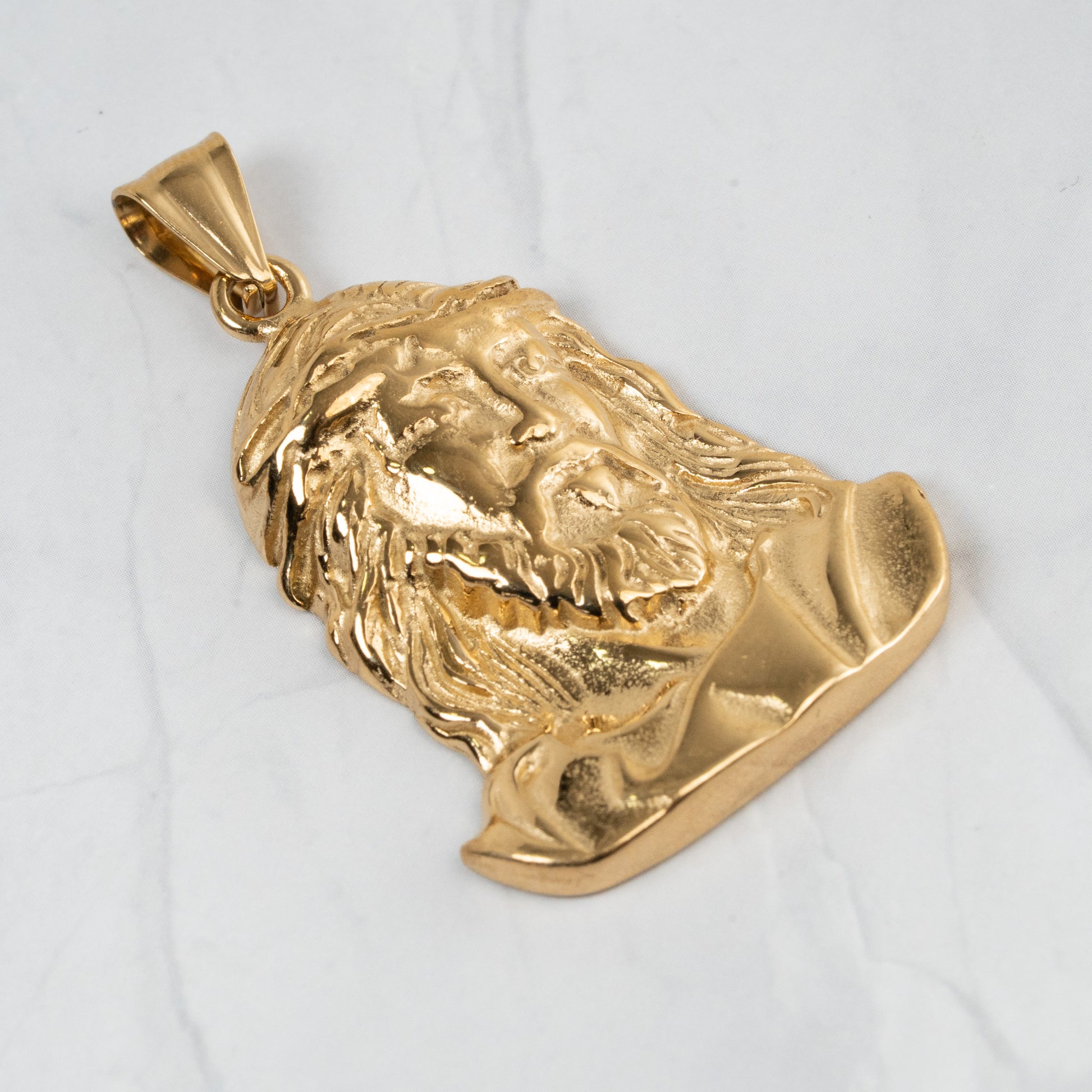 Dije Rostro Jesus en Oro Laminado Italiano 18K. Combina elegancia y durabilidad. Una pieza resistente que mantiene su belleza a lo largo del tiempo, ideal para realzar cualquier look. Ideal para cadenas de hasta 6mm.