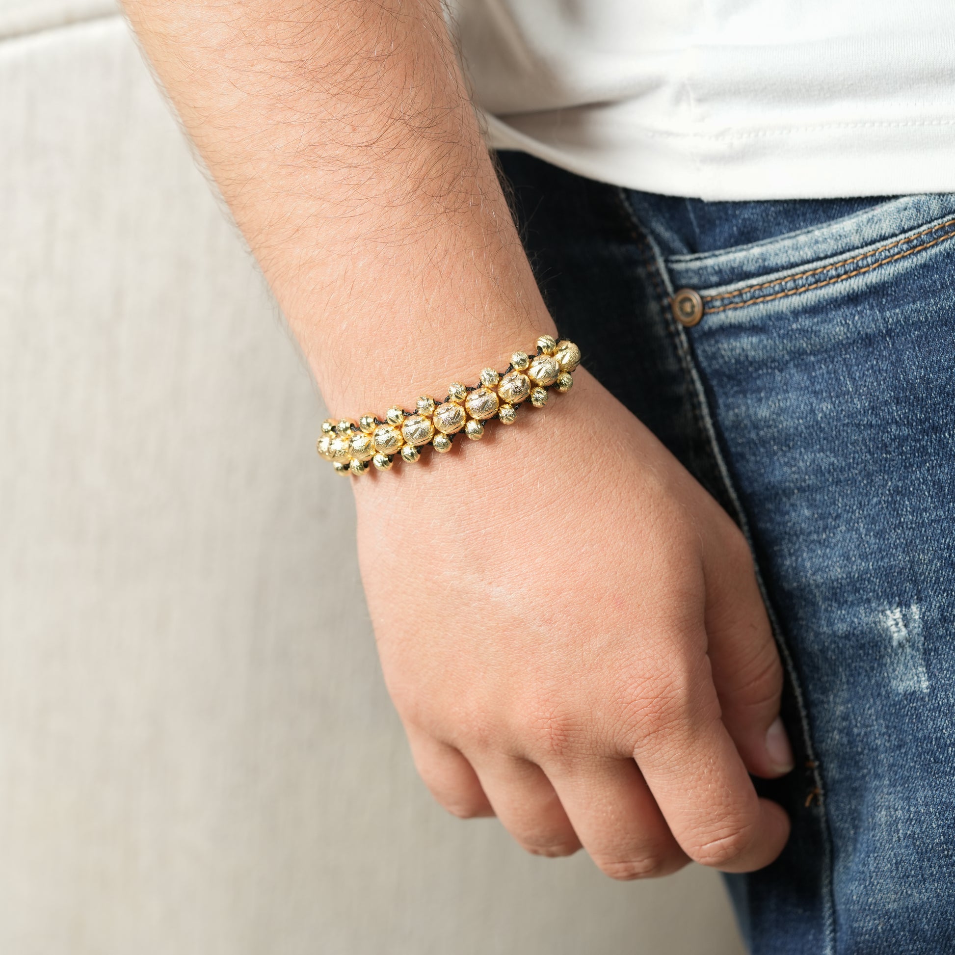 La Manilla Diamantada Italiana Tres Carriles es perfecta para añadir un toque de elegancia a cualquier outfit. Con balines de oro laminado tejidos en la manilla, su ajuste adaptable la hace perfecta para cualquier tamaño de muñeca. ¡Haz una declaración con esta única y lujosa manilla!