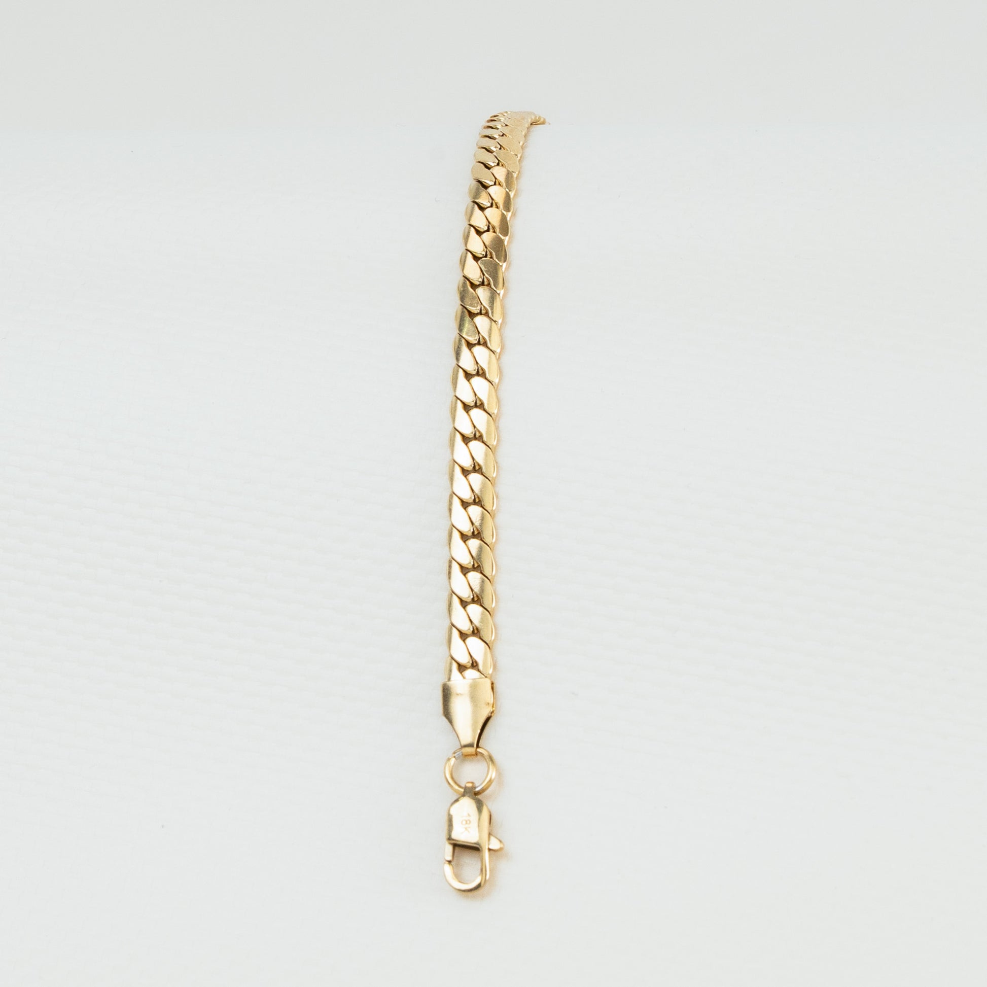 Pulsera de Oro Laminado Italiano 18K con diseño clásico y acabado brillante. Perfecta para usar sola o con otros accesorios, combina elegancia y durabilidad. Una pieza resistente que mantiene su belleza a lo largo del tiempo, ideal para realzar cualquier look. Todas nuestras joyas son contramarcadas en sus broches (por un lado el doble lingote que nos identifica y por le otro el 18K).